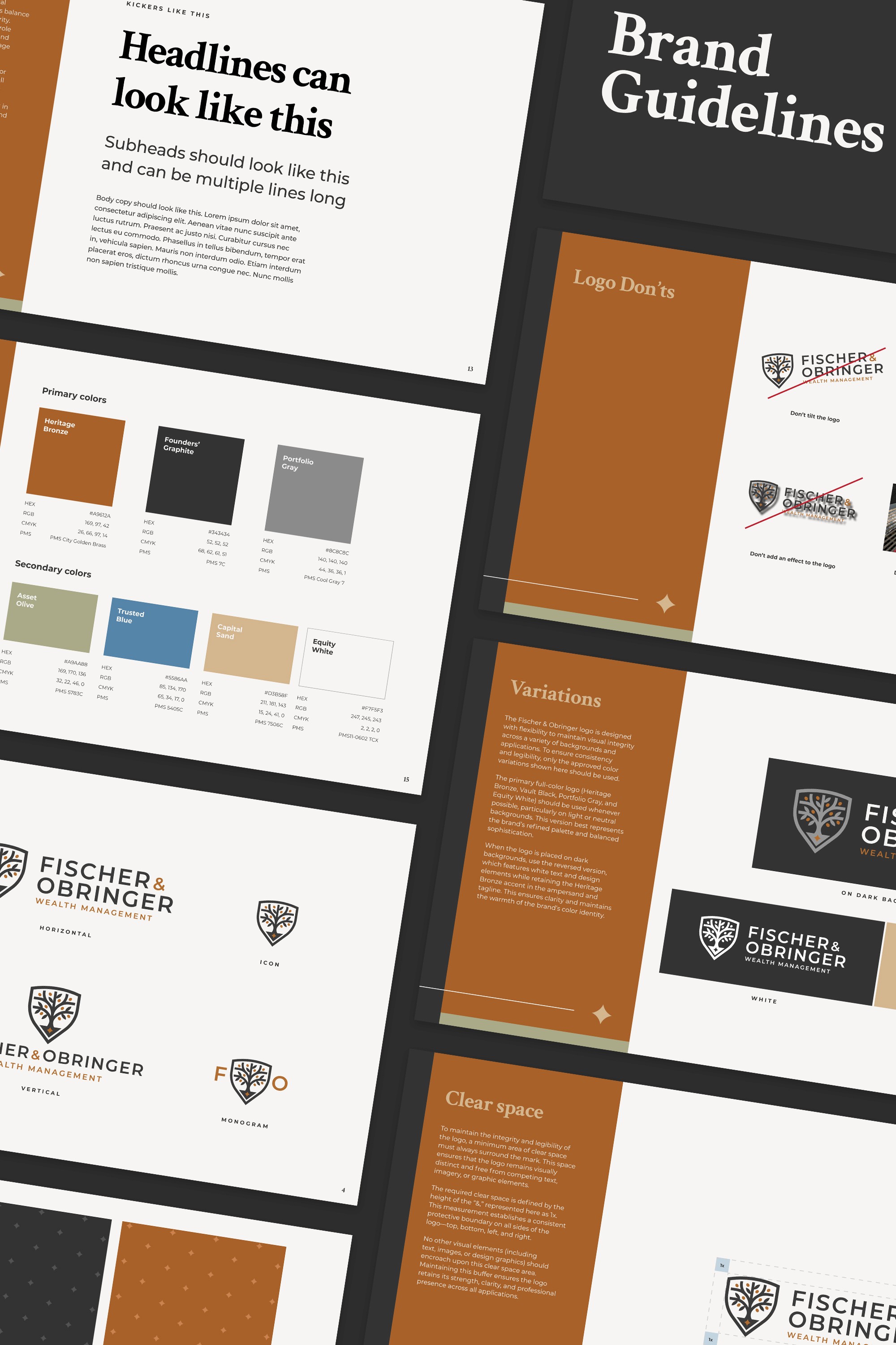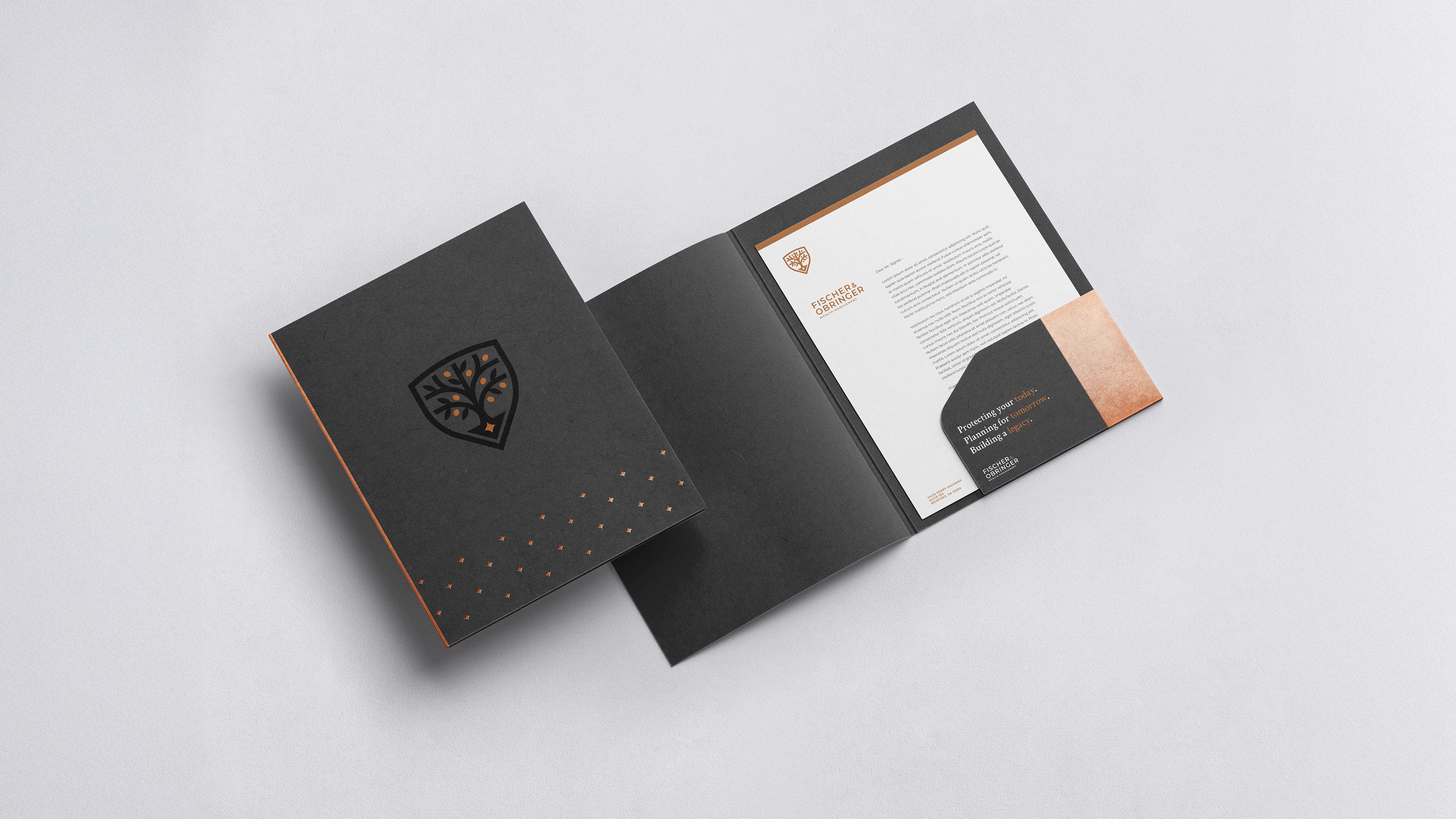 I partnered with Fischer & Obringer to develop a complete brand identity that speaks directly to the core values of wealth management: trust, heritage, and future-focused growth. Our strategy was to move beyond typical corporate clichés and craft an image that feels enduring and genuinely high-end. The entire brand ecosystem, from the selection of the authoritative logo and the premium, tactile materials to the sophisticated color palette featuring rich copper accents, was intentionally designed to convey a sense of established permanence. The result is a unified, compelling identity that assures clients of the firm's stability and specialized care, successfully positioning Fischer & Obringer as a refined and reliable partner for managing generational wealth.